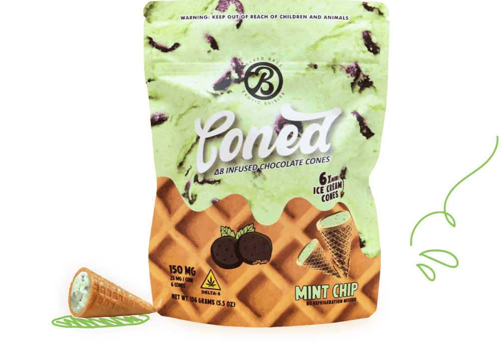 Enjoy the perfect blend of mint chip flavor and Delta-9 THC with Mint Chip THC Ice Cream Cones by Baked Bags. A refreshing and relaxing edible experience!