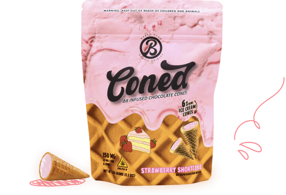 Satisfy your cravings with Strawberry Shortcake THC Ice Cream Cones by Baked Bags. These Delta-9 THC cones deliver a sweet, relaxing treat perfect for any occasion.