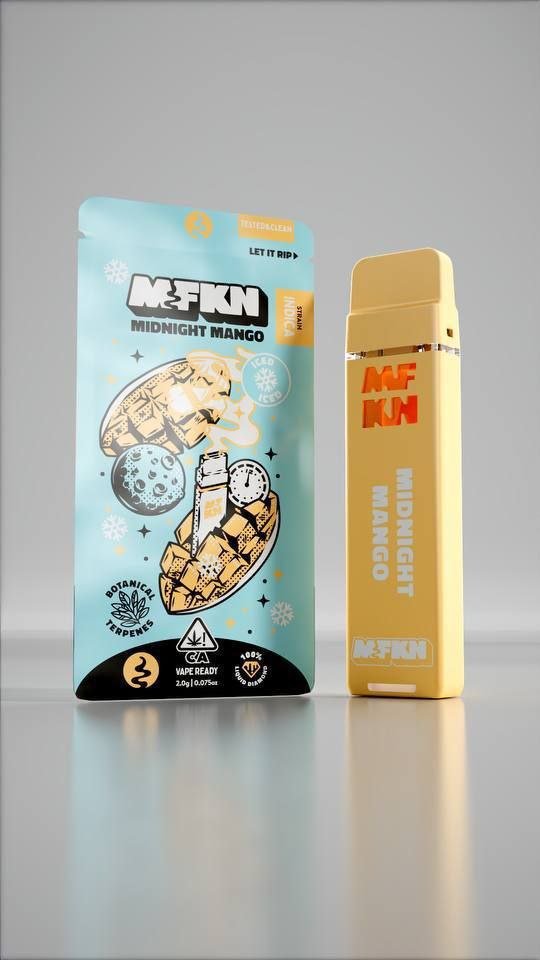 Itsamfkndonut 2G Disposable potable handheld vaporize devices come pre-filled with purified and clean cannabis oil ready to smoke and enjoy your vaping experience. These carts are Typically sold in a gram increment. Itsamfkndonut 2G Disposable come in a variety of well known strains and are generally loved for their potency and flavorful vapor. Whether you’re looking for something fruity, spicy, energizing, or chill, there’s a live resin THC cartridge out there to suit your style and your vaporizer. MfknDonut 2G Midnight Mango are Flavorful, hard-hitting, and super smooth.
