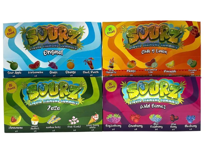 Sourz Gummies 600mg are extra medicated gummies that come in a package of 5 big “S” gummies, each containing 10mg of THC. They are available in various flavors such as Grape Ape, Jarritos Pineapple, Lemon Tree, Strawnana, and Birthday Cake Kush. These gummies are blasted with sour crystals and have natural flavors and colors. The gummies are extra medicated, extra strength, and extra sour, made with natural fruit gummies and premium lab-tested cannabis oil.