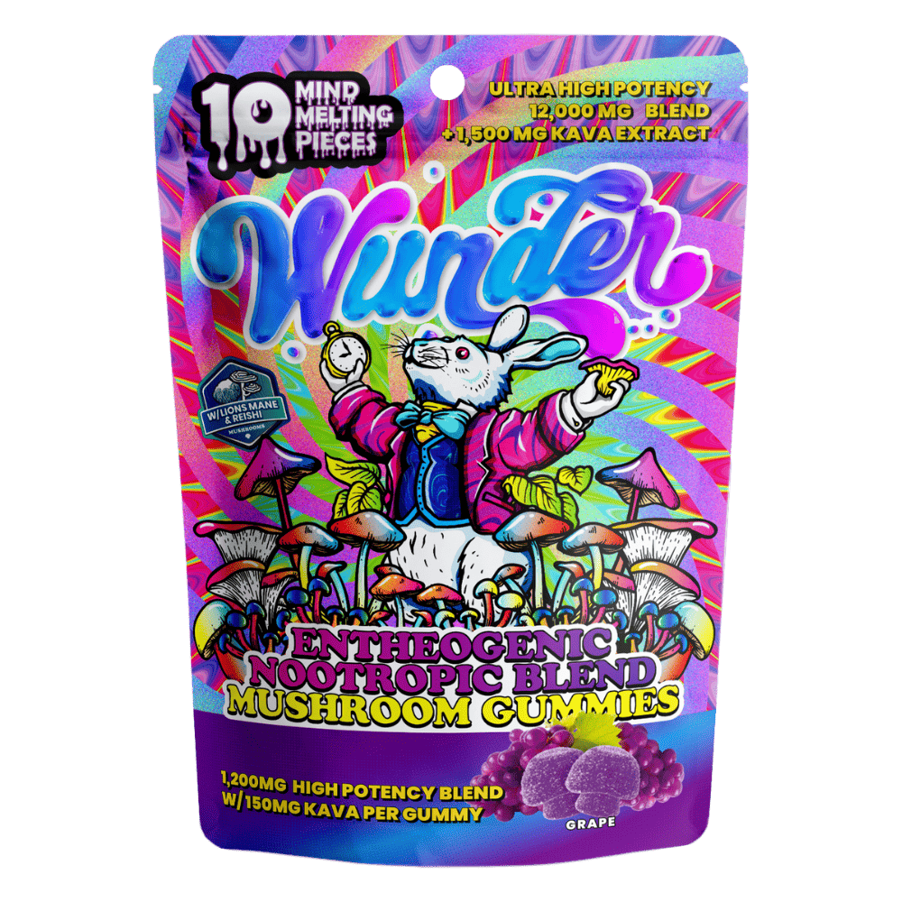 Elevate your mind with Grape Mushroom Gummies with Kava by Wunder. 1,200mg of entheogenic mushrooms + 150mg Kava per gummy for euphoria, relaxation, and altered consciousness.